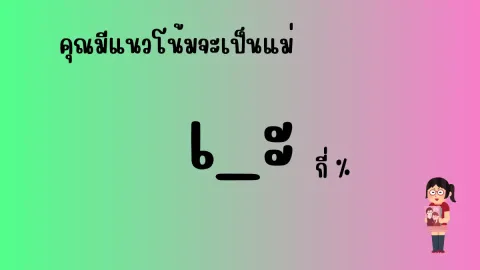 คุณมีแนวโน้มจะเป็นแม่ <เ_ะ> กี่ %