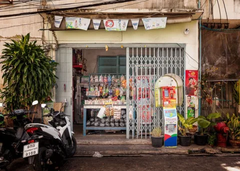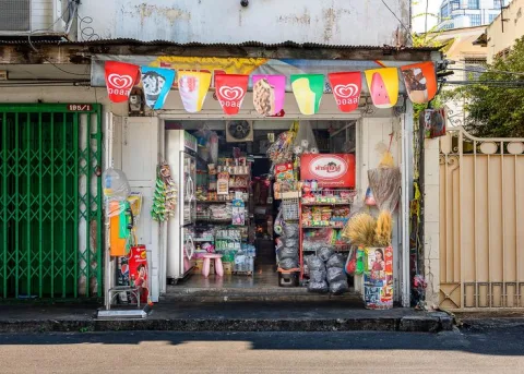 เสร็จแล้วคุณเดินไปซื้อขนม(ร้าน)