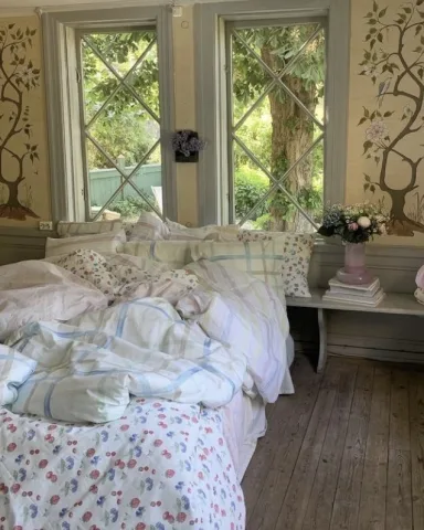 หน้าต่างกว้าง ๆ ที่มองเห็นสวน